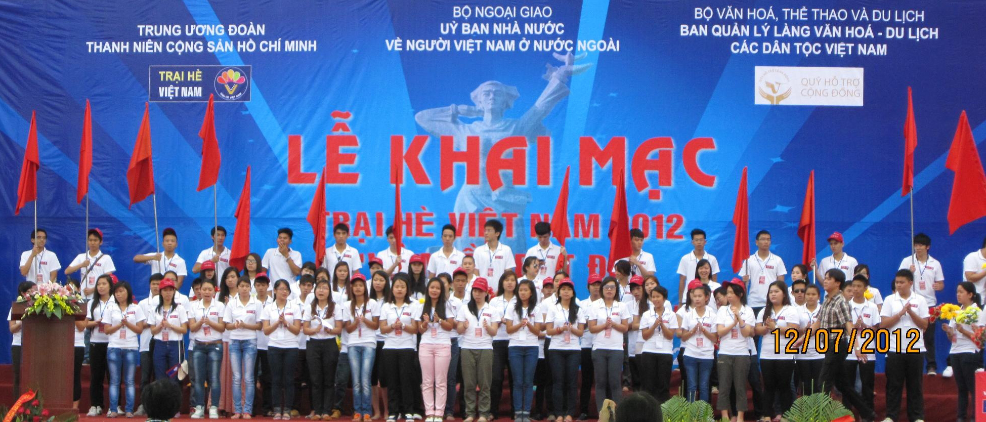 (VOV5) - Sáng ngày 12/7, tại Làng Văn hóa - Du lịch các dân tộc Việt Nam, Đồng Mô, Sơn Tây, Hà Nội, Trại hè Việt Nam 2012 chính thức khai mạc với chủ đề “Về miền Đất đỏ”. Đây là chủ đề nhằm tưởng nhớ 60 năm ngày hy sinh của nữ anh hùng Võ Thị Sáu, kỷ niệm 150 năm Nhà tù Côn Đảo và 65 năm ngày Thương binh Liệt sỹ.