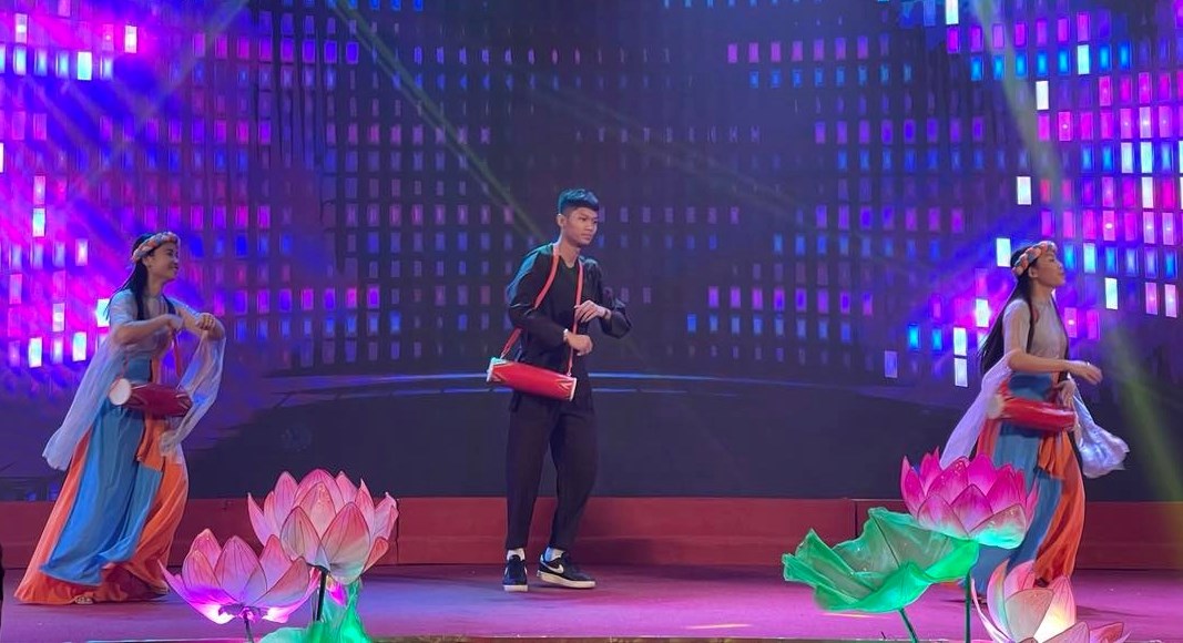 Tiết mục Trống cơm do đoàn đại biểu kiều bào trẻ Belarus trình diễn. |