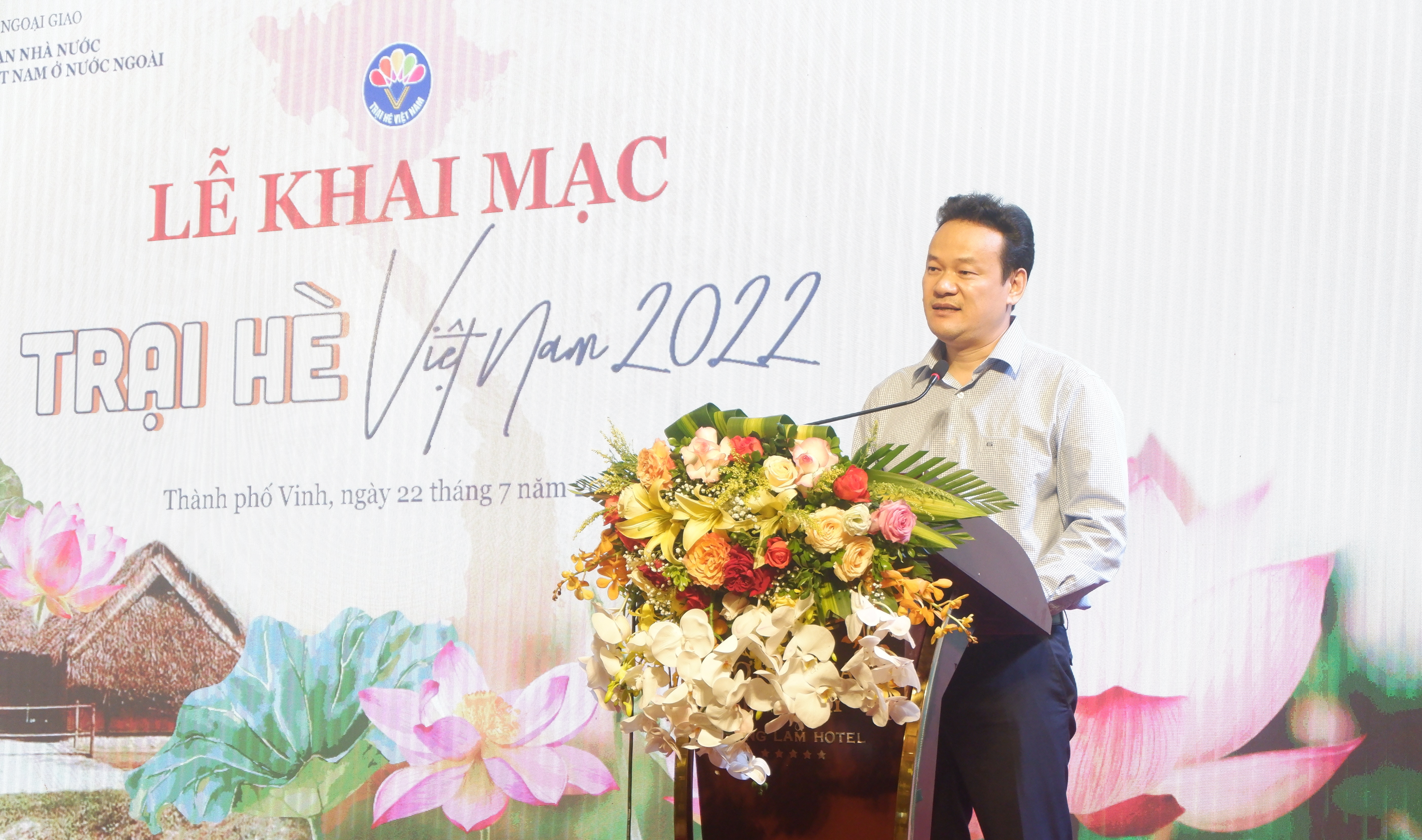 Thay mặt lãnh đạo tỉnh Nghệ An, ông Bùi Đình Long, Phó Chủ tịch UBND tỉnh chào mừng Đoàn đại biểu Trại hè Việt Nam 2022 về với tỉnh và ông tin tưởng sau ba ngày tại Nghệ An, các bạn sẽ có những khoảnh khắc đáng nhớ, những kiến thức bổ ích khi đến với mảnh đất Nghệ An.