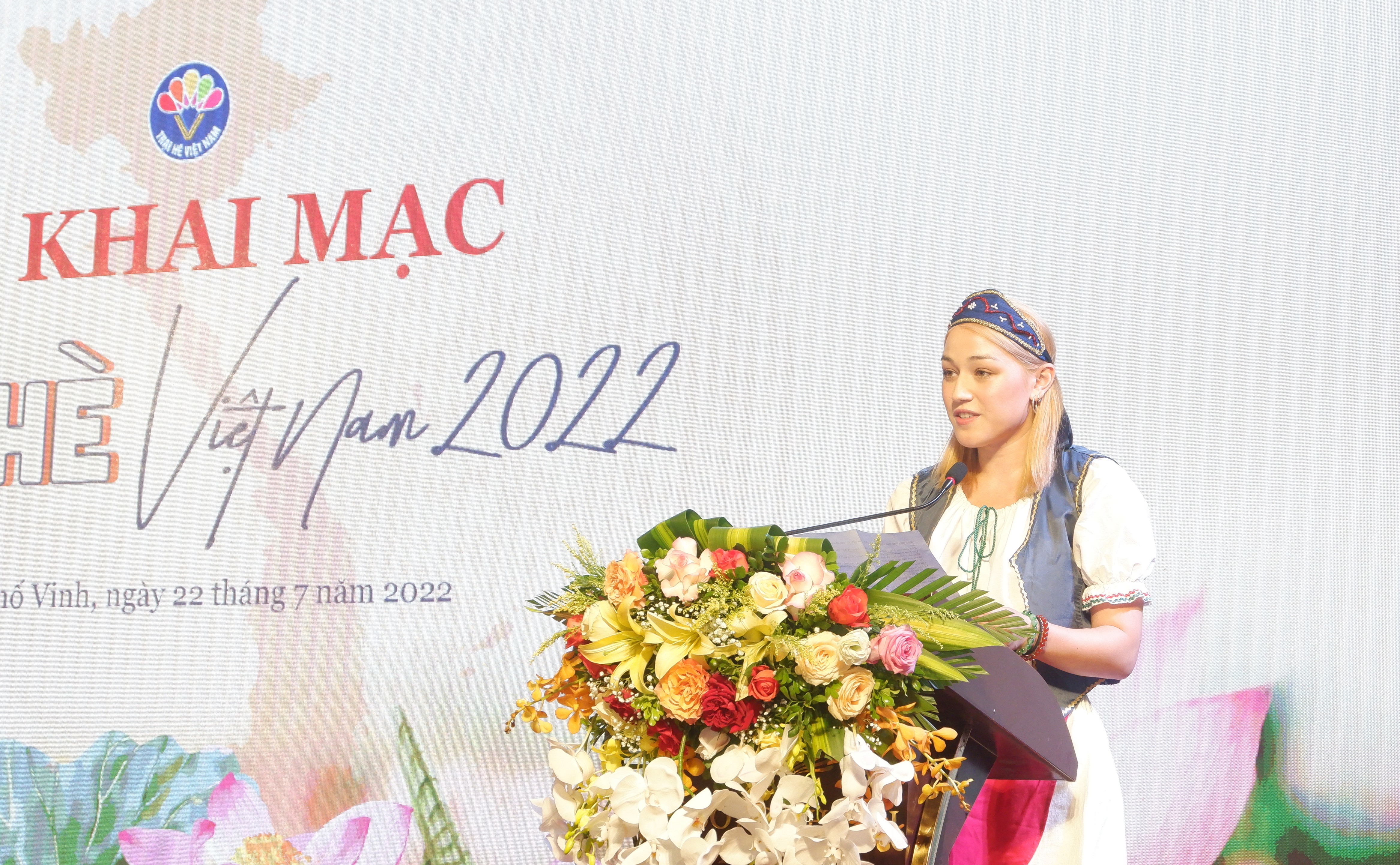 Buổi lễ khai mạc Trại hè Việt Nam diễn ra trong không khí gần gũi, đoàn kết, sôi động với nhiều tiết mục văn nghệ đặc sắc kết nối thế hệ trẻ trong nước và ngoài nước. Phát biểu tại lễ khai mạc, cô gái Thuroczy Viktoria Ly Anh, kiều bào Hungary, từng được Bộ trưởng Bộ nguồn nhân lực Hungary tặng giải thưởng “Học sinh xuất sắc, Vận động viên ưu tú Hungary”, cho biết: “Tôi rất vui được gặp, làm quen với các bạn người Việt từ nhiều nước khác. Đây là lần đầu tiên tôi được thăm Việt Nam cùng các bạn, không phải cùng gia đình. Chúng tôi đã được đi thăm nhà sàn của Bác Hồ, được thăm Làng Sen, được biết thêm nhiều điều về Chủ tịch Hồ Chí Minh. Tôi tin rằng sau trại hè, chúng tôi sẽ biết thêm nhiều về đất nước, lịch sử của Việt Nam, nói tiếng Việt tốt hơn”.