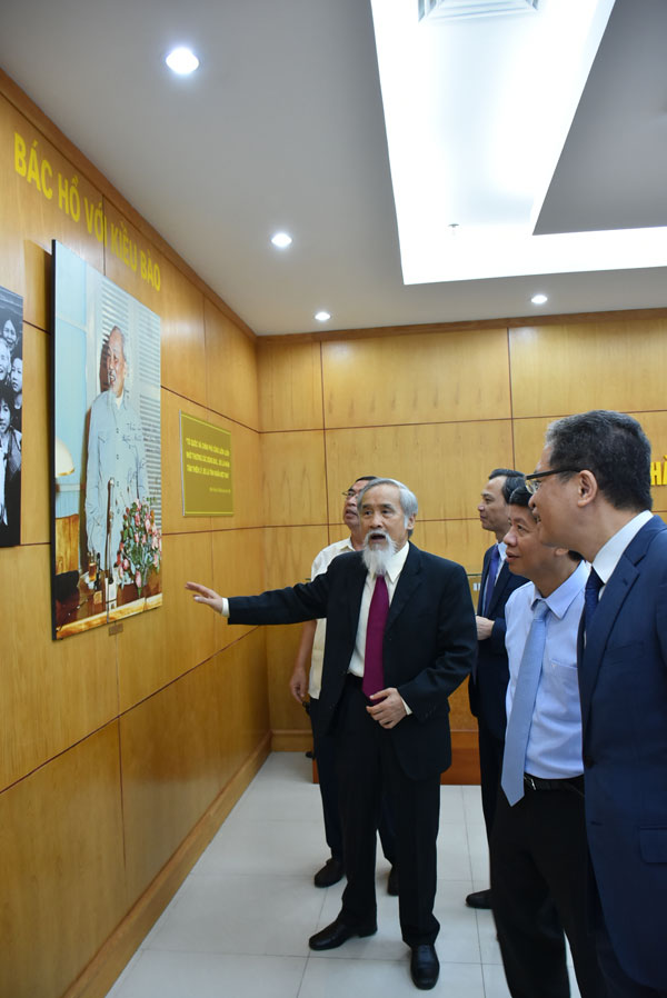 Các Lãnh đạo, nguyên Lãnh đạo Ủy ban xúc động, ấn tượng trước tấm ảnh chân dung Bác gửi bà con kiều bào tại Pháp được trưng bày trang trọng tại Phòng truyền thống |