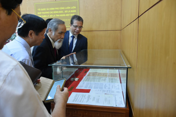 Các thế hệ Lãnh đạo, nguyên Lãnh đạo Ủy ban tham quan hiện vật trưng bày tại Phòng Truyền thống |