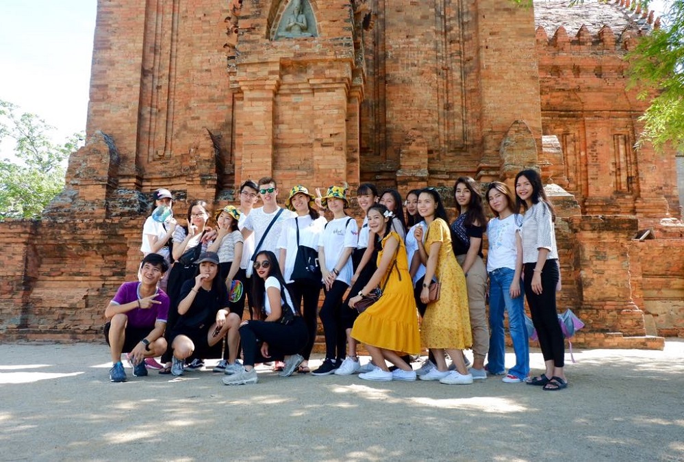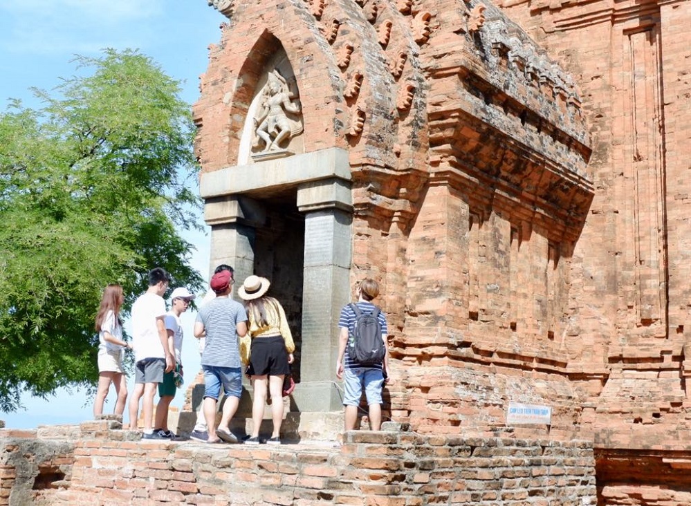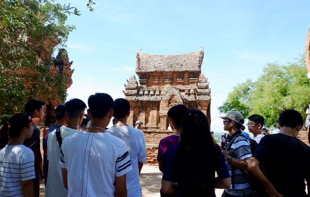 Tại đây, đoàn vừa tham quan cụm tháp, vừa tìm hiểu phong tục, tập quán của người Chăm tại Bảo tàng văn hóa dân tộc Chăm nằm ngay dưới chân tháp.