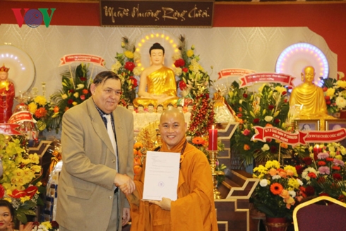 | Chủ tịch Hội đồng dân tộc thiểu số tỉnh Ustecsky trao quyết định công nhận Trung tâm Văn hóa Phật giáo-chùa Most. |