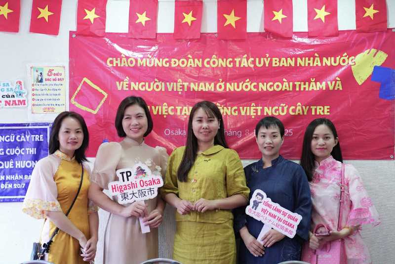 Từ phải qua: Ông Nguyễn Trung Kiên, Chủ nhiệm Ủy ban Nhà nước về người Việt Nam ở nước ngoài; bà Lê Thương, Hiệu trưởng trường Việt ngữ Cây Tre; ông Nguyễn Đăng Hoàng, cán bộ Tổng lãnh sự quán Việt Nam tại Osaka |