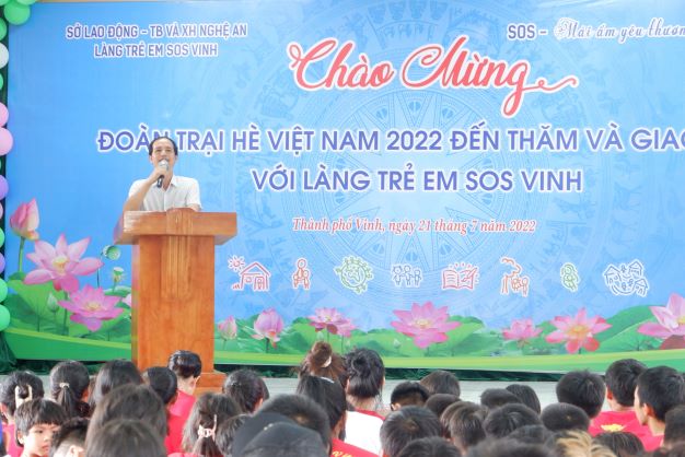 Buổi chiều, đoàn đến thăm, tặng quà, giao lưu tại Làng trẻ em SOS Vinh. Đây là đơn vị chăm sóc, nuôi dưỡng và giáo dục trẻ mồ côi, trẻ em có hoàn cảnh đặc biệt khó khăn trên địa bàn tỉnh Nghệ An. Ông Lê Bá Lương, Giám đốc Làng trẻ em SOS Vinh cho biết, làng được thành lập năm 1989, là món quà của tổ chức SOS Quốc tế, đặc biệt là tình cảm của nguyên Chủ tịch SOS Quốc Tế Hellmut Kutin đã dành cho Nghệ An. Hiện làng thực hiện theo mô hình gia đình, có cha mẹ, anh chị em, mái ấm và cộng đồng. Làng cũng có trường mẫu giáo SOS với 6 lớp học để giảng dạy cho con em trong làng và trẻ em trên địa bàn tỉnh.