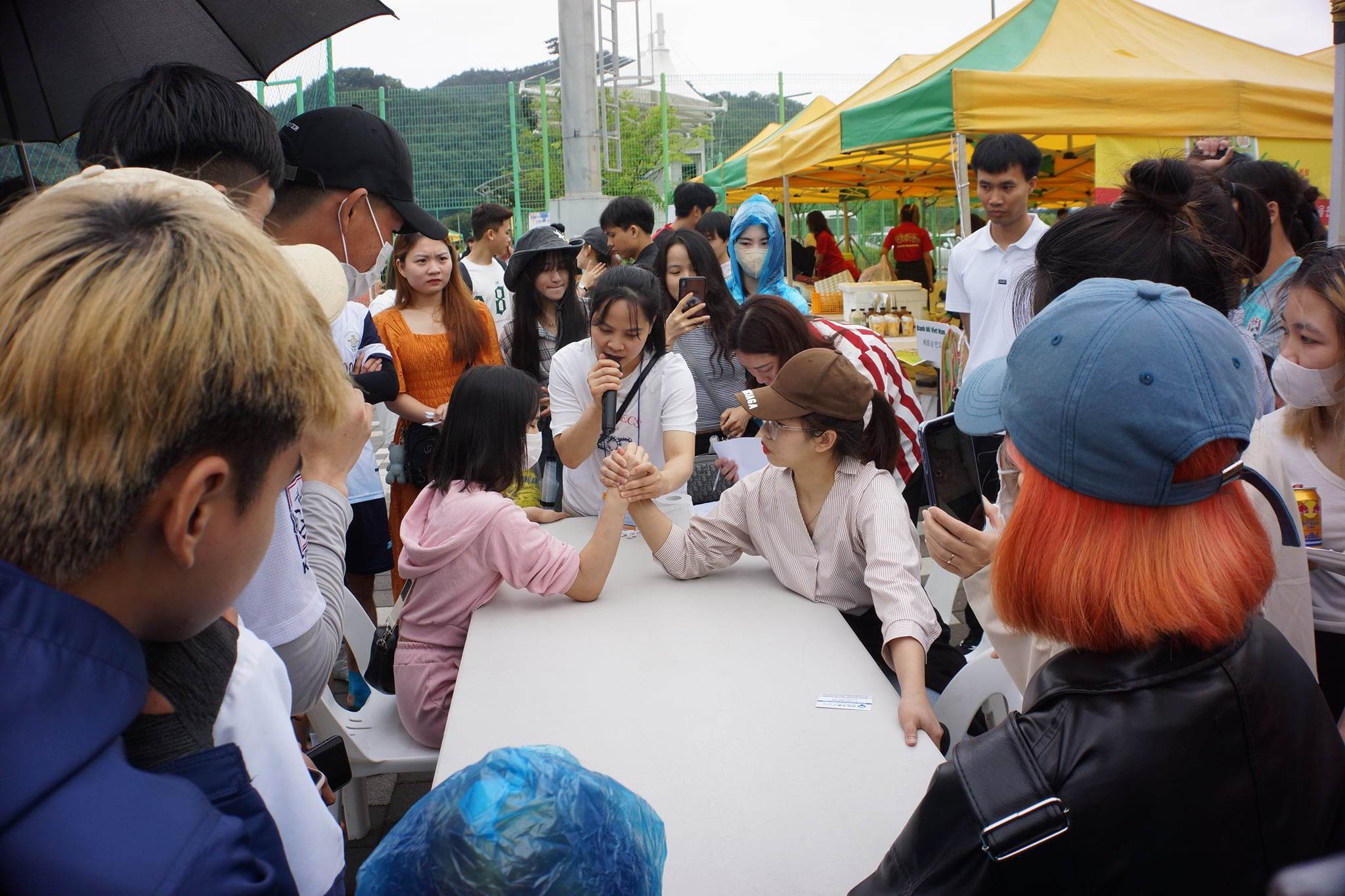 Hào hứng môn thi vật tay nữ. Ảnh BTC |
