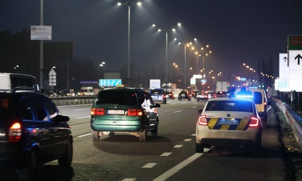 Dòng xe rời khỏi thủ đô Kiev của Ukraine khi Nga mở chiến dịch ở vùng Donbass -Nguồn: Getty |