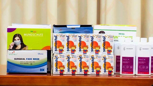 Lô hàng được trao tặng cho Vĩnh Phúc lần này bao gồm 12.000 khẩu trang y tế, 200 hộp vitamine, 200 hộp nước sát trùng.
