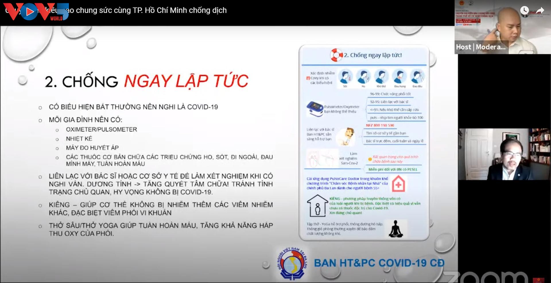 Hội thảo diễn ra theo hình thức trực tuyến, là hoạt động trong chuỗi các hội thảo do Ủy ban Nhà nước về người Việt Nam ở nước ngoài kết hợp với các đơn vị liên quan thực hiện nhằm kêu gọi kiều bào có chuyên môn chia sẻ kinh nghiệm, đề xuất các biện pháp chống dịch covid 19 phù hợp - Ảnh chụp màn hình. |
