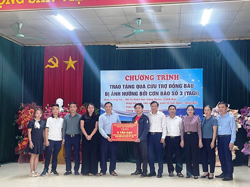 - Hiệp hội Xúc tiến hợp tác kinh tế Việt Nam - Nhật Bản, Viện ứng dụng Công nghệ & Phát triển giáo dục và Công ty Educhain Việt Nam tặng 5 tấn gạo;