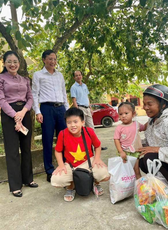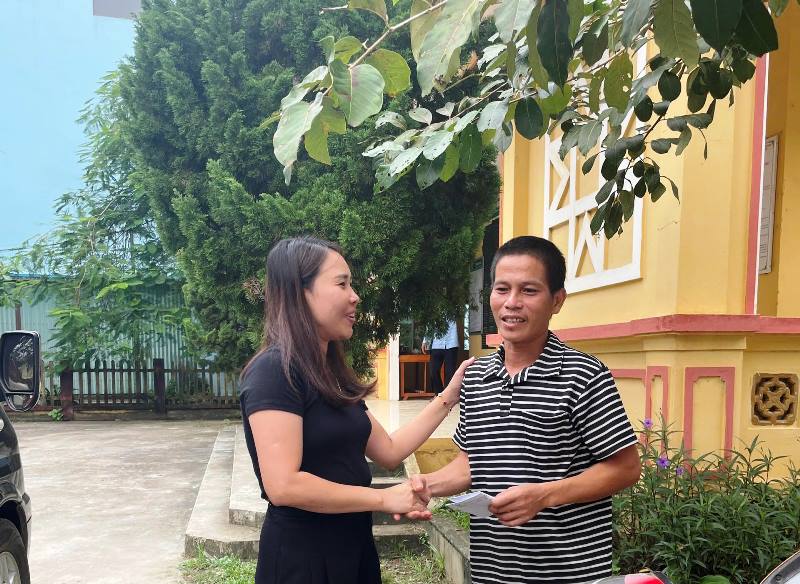 Lãnh đạo và nhân dân vùng lũ tiếp nhận quà của đoàn, bao gồm cả hiện vật và tiền mặt |