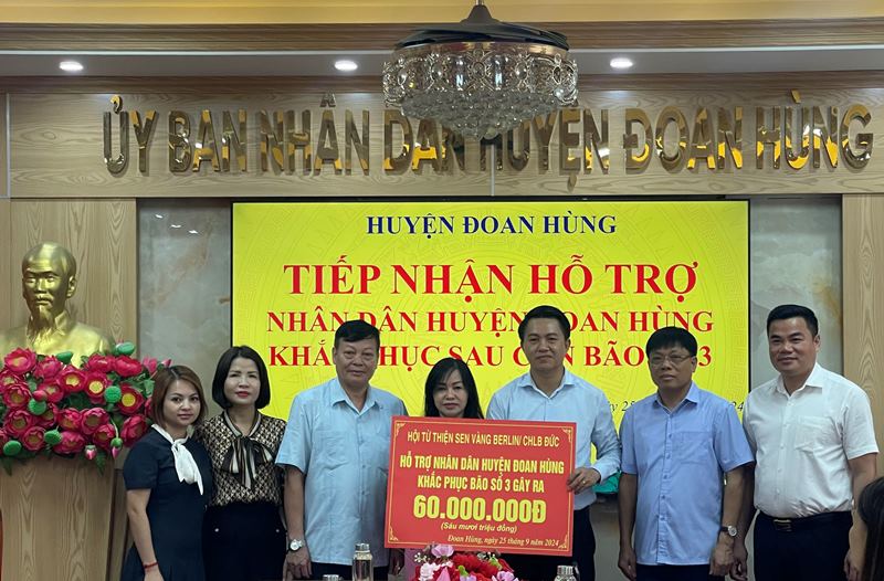 - Hội từ thiện Sen Vàng Berlin, CHLB Đức: ủng hộ 60 triệu đồng cho 30 hộ dân.