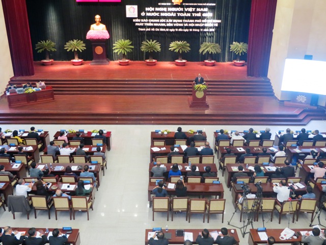 Đến dự và phát biểu chỉ đạo Hội nghị, Thủ tướng Chính phủ Nguyễn Xuân Phúc đánh giá cao những đóng góp thiết thực của kiều bào trong sự nghiệp xây dựng và bảo vệ Tổ quốc Việt Nam thời gian qua. Thông báo với bà con về Chương trình hành động về công tác đối với người Việt Nam ở nước ngoài giai đoạn 2016 – 2020 của Chính phủ, Thủ tướng nhấn mạnh: “Tôi đề nghị Bộ ngoại giao, Ủy ban Nhà nước về người Việt Nam ở nước ngoài, đặc biệt là Thành phố Hồ Chí Minh, các thành phố lớn, các tỉnh trọng điểm trên cả nước, chú trọng tạo dựng các kênh, diễn đàn đối thoại khả thi, thực chất để kiều bào phản ánh, đề xuất, khuyến nghị và các địa phương có tiếp thu, có phản hồi, khuyến khích tạo điều kiện cho trí thức trẻ và những người có kinh nghiệm ở nước ngoài đóng góp nâng cao chất lượng nguồn nhân lực. Nhân dịp này, tôi cũng kêu gọi đồng bào ta ở nước ngoài, tùy vào khả năng và điều kiện của mình, cùng chung sức đóng góp xây dựng Thành phố Hồ Chí Minh văn minh, hiện đại, nghĩa tình.”