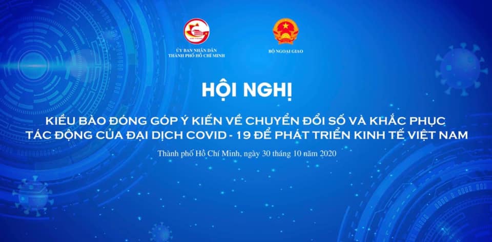 Từ ngày 29/10/2020 - 31/10/2020, Bộ Ngoại giao và UBND thành phố Hồ Chí Minh phối hợp tổ chức Hội nghị “Kiều bào đóng góp ý kiến về Chuyển đổi số và khắc phục tác động của đại dịch Covid-19 để phát triển kinh tế Việt Nam” tại thành phố Hồ Chí Minh.