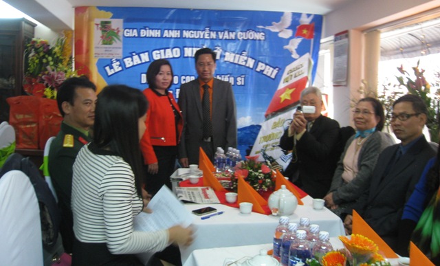 | Vợ chồng anh Nguyễn Văn Cường trong lễ bàn giao nhà ở |