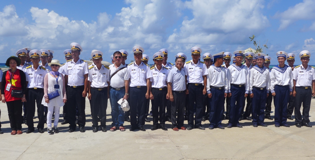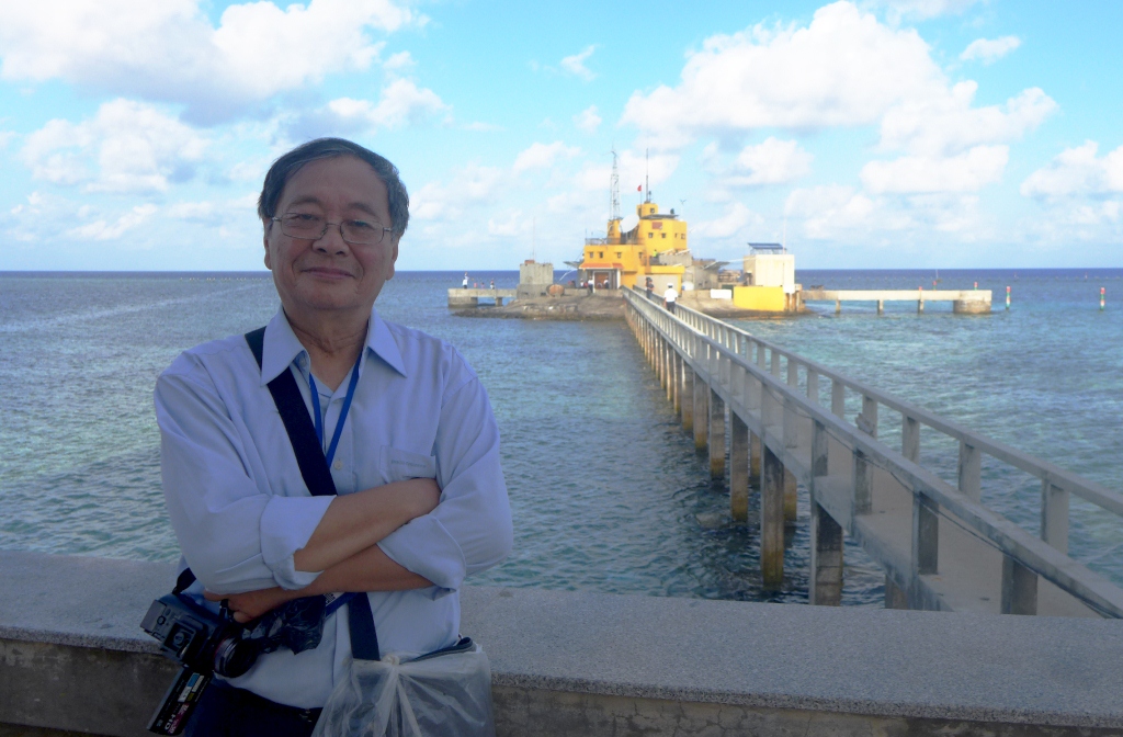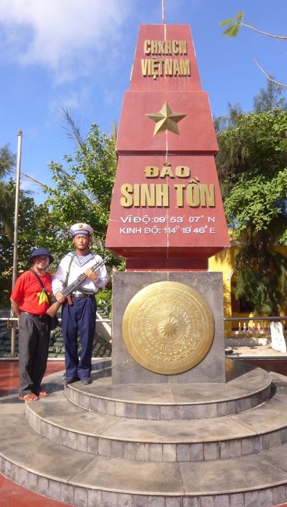 Ông Nguyễn Thanh Tòng chụp ảnh kỷ niệm trong chuyến thăm quần đảo Trường Sa. |