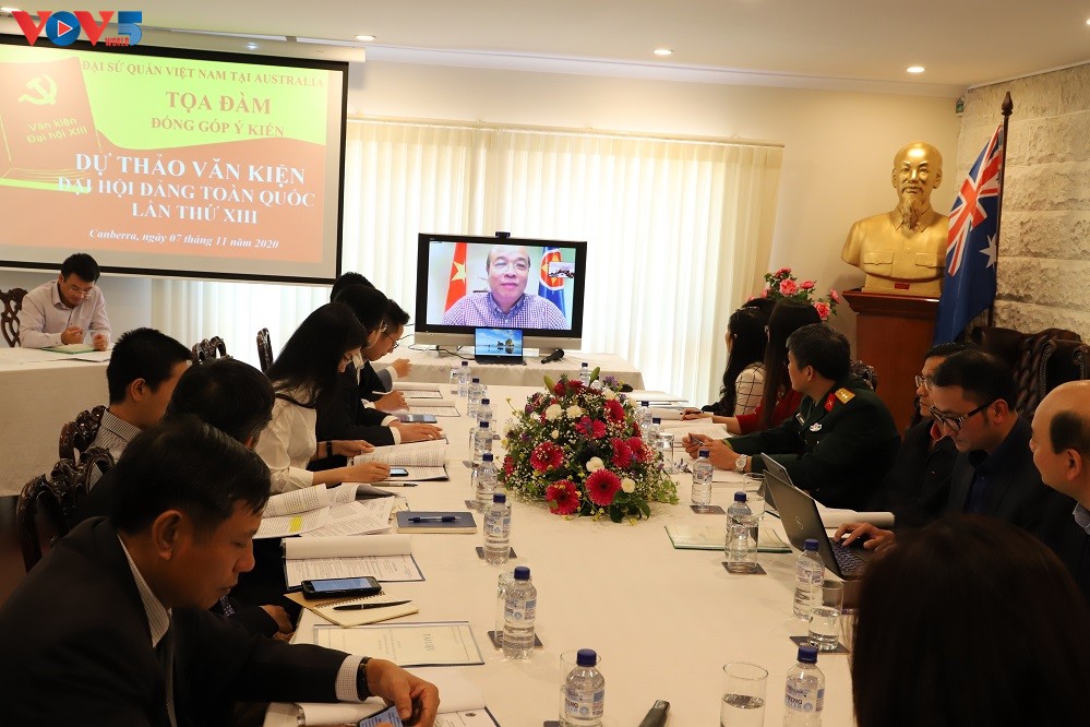 Ngày 7/11, Đại sứ quán Việt Nam tại Australia tổ chức tọa đàm để lấy ý kiến đóng góp của người dân và các kiều bào đối với Dự thảo văn kiện trình Đại hội Đảng toàn quốc lần thứ XIII. Tọa đàm diễn ra tại thủ đô Canberra và có sự tham gia của 11 điểm cầu trực tuyến từ khắp các bang và vùng lãnh thổ khác của Australia.