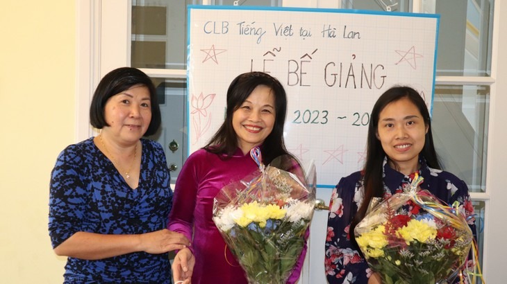 Chị Nguyễn Thị Lan Hương (ở giữa) cùng phụ huynh và giáo viên lớp tiếng Việt tại Hà Lan |