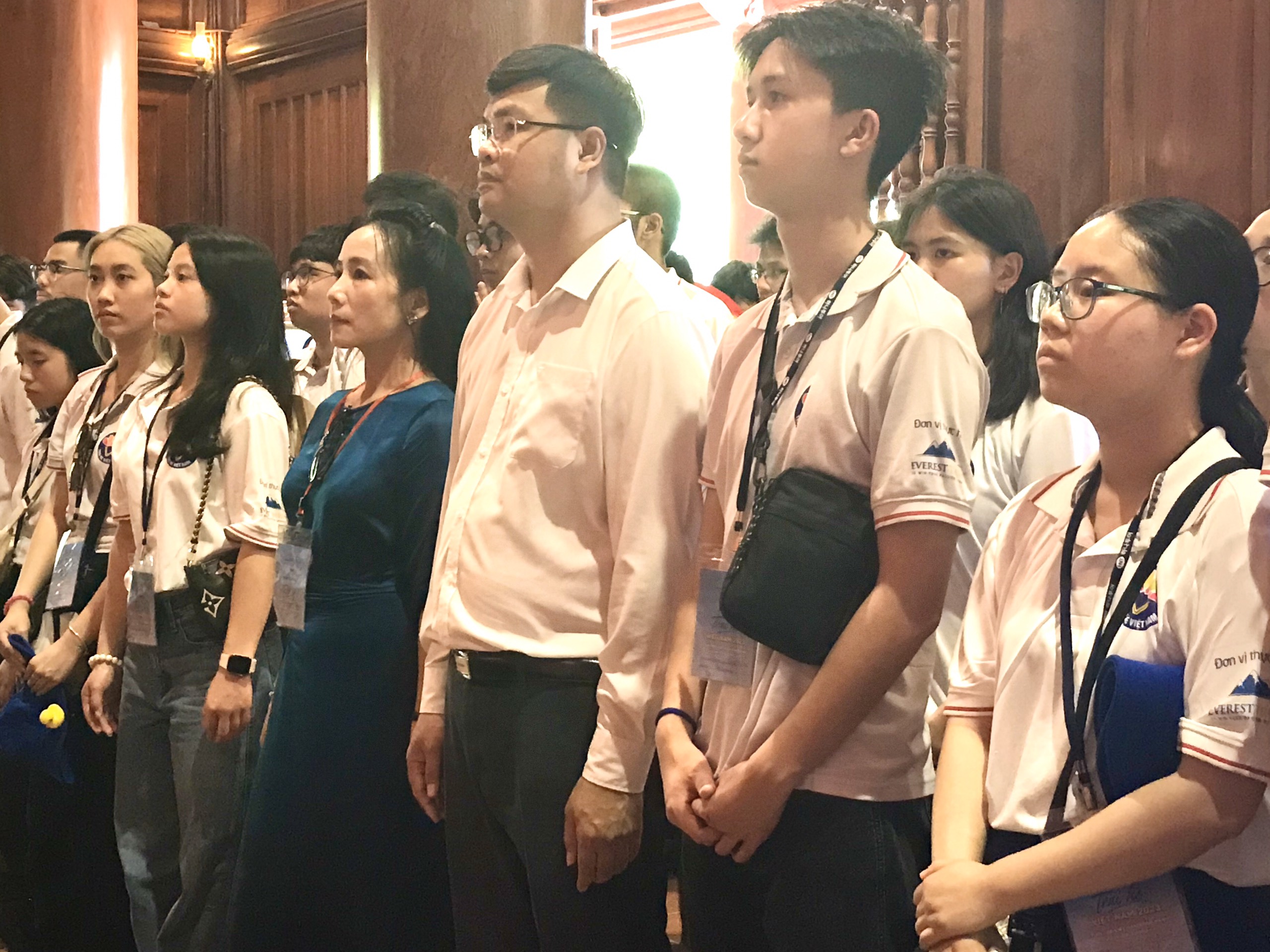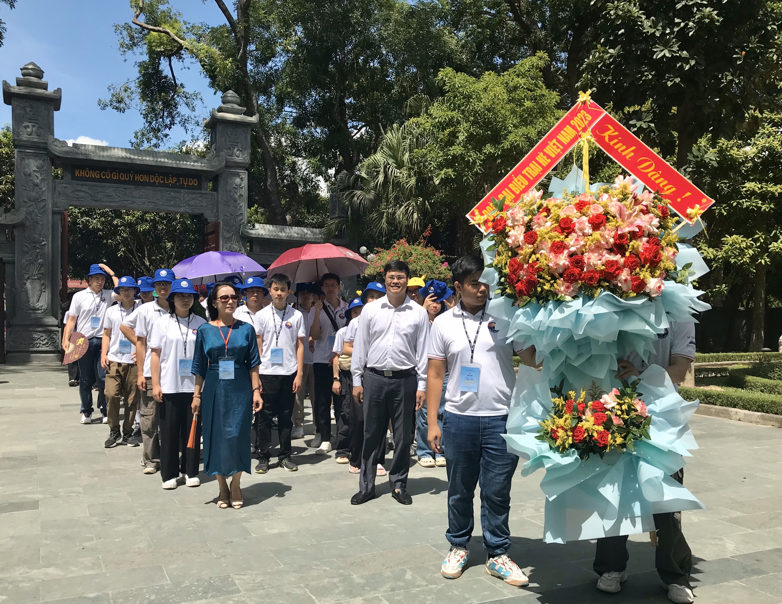 Đoàn Trại hè Việt Nam 2023 dâng hoa tưởng niệm Chủ tịch Hồ Chí Minh tại Khu Di tích Kim Liên. |