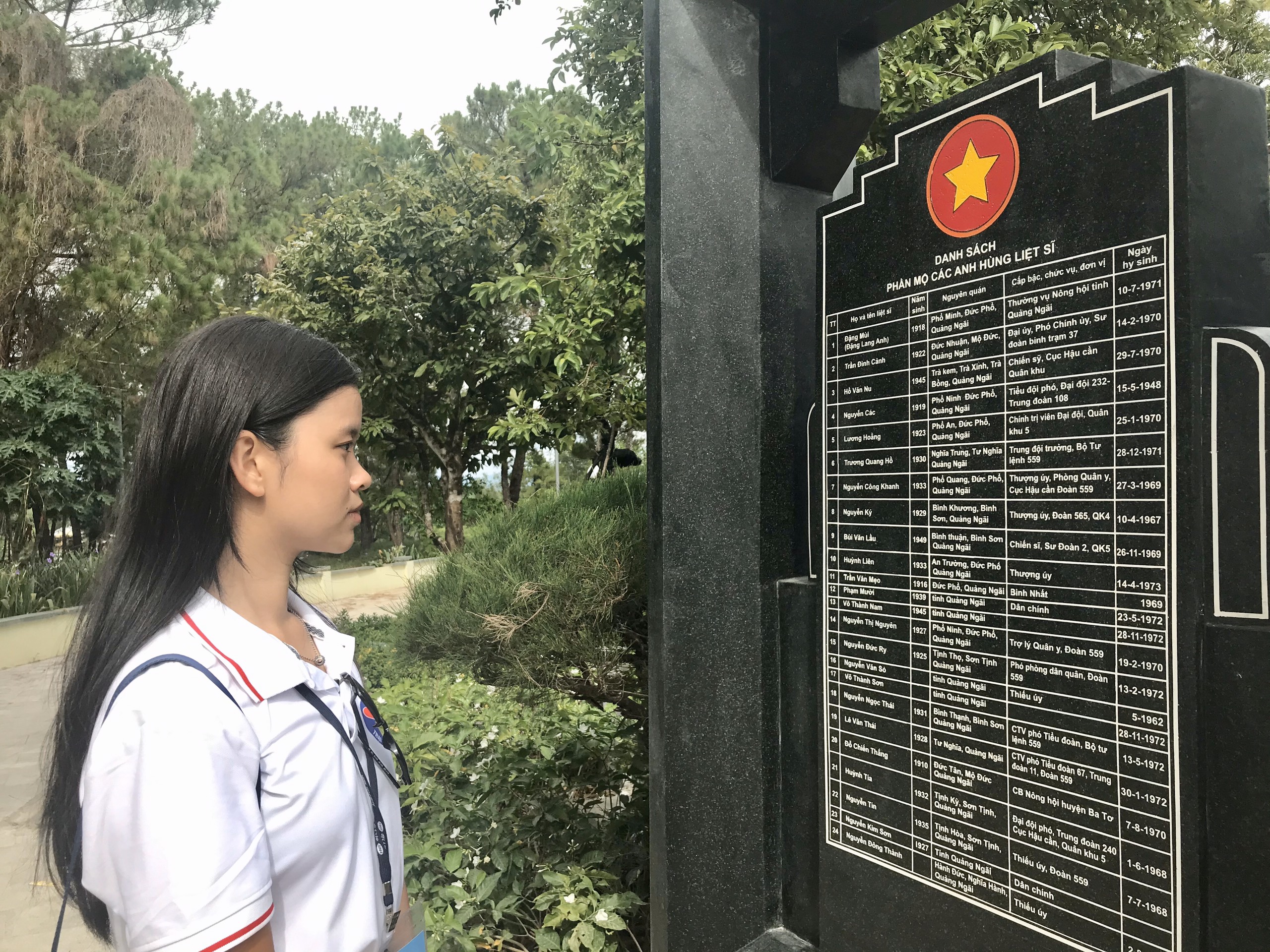Lê Nguyễn Tùng Chi, người Việt tại Malaysia tâm sự, ông nội em là giáo viên dạy học tại trường cấp 3 Vĩnh Linh từ năm 1964 đến 1966. Trước kia, ông hay kể cho con cháu nghe về những hi sinh mất mát một thời ở miền đất lửa Quảng Trị: "Khi tôi được tận mắt nhìn thấy các ngôi mộ liệt sỹ ở nghĩa trang Trường Sơn, tôi thấy được sự khốc liệt của chiến tranh. Tôi cảm nhận rõ chiến tranh là đau thương mất mát. Nhưng cha ông ta đã sẵn sàng cống hiến, thậm chí cả máu xương, tính mạng của mình để đem lại hòa bình cho đất nước, cho thế hệ sau. Là một người Việt trẻ, tôi rất biết ơn sự hy sinh đó. Tôi nghĩ rằng xây dựng đất nước phải đi đôi với bảo vệ đất nước".