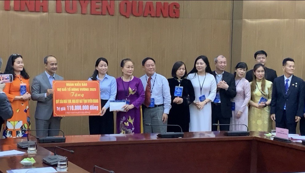 Nhân dịp này, Đoàn kiều bào đã trao quà từ thiện, đóng góp cho Chương trình Xóa nhà tạm, nhà dột nát của tỉnh Tuyên Quang.