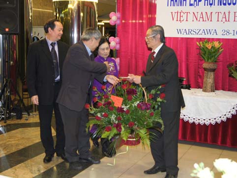 ĐSQ Việt Nam tại Ba Lan cùng các tổ chức cộng đồng đã lên tặng hoa và quà chúc mừng Hội NCT