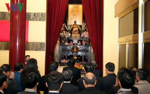 | Lễ dâng hương tại bàn thờ Bác Hồ ở trụ sở Đại sứ quán Việt Nam tại Pháp. |