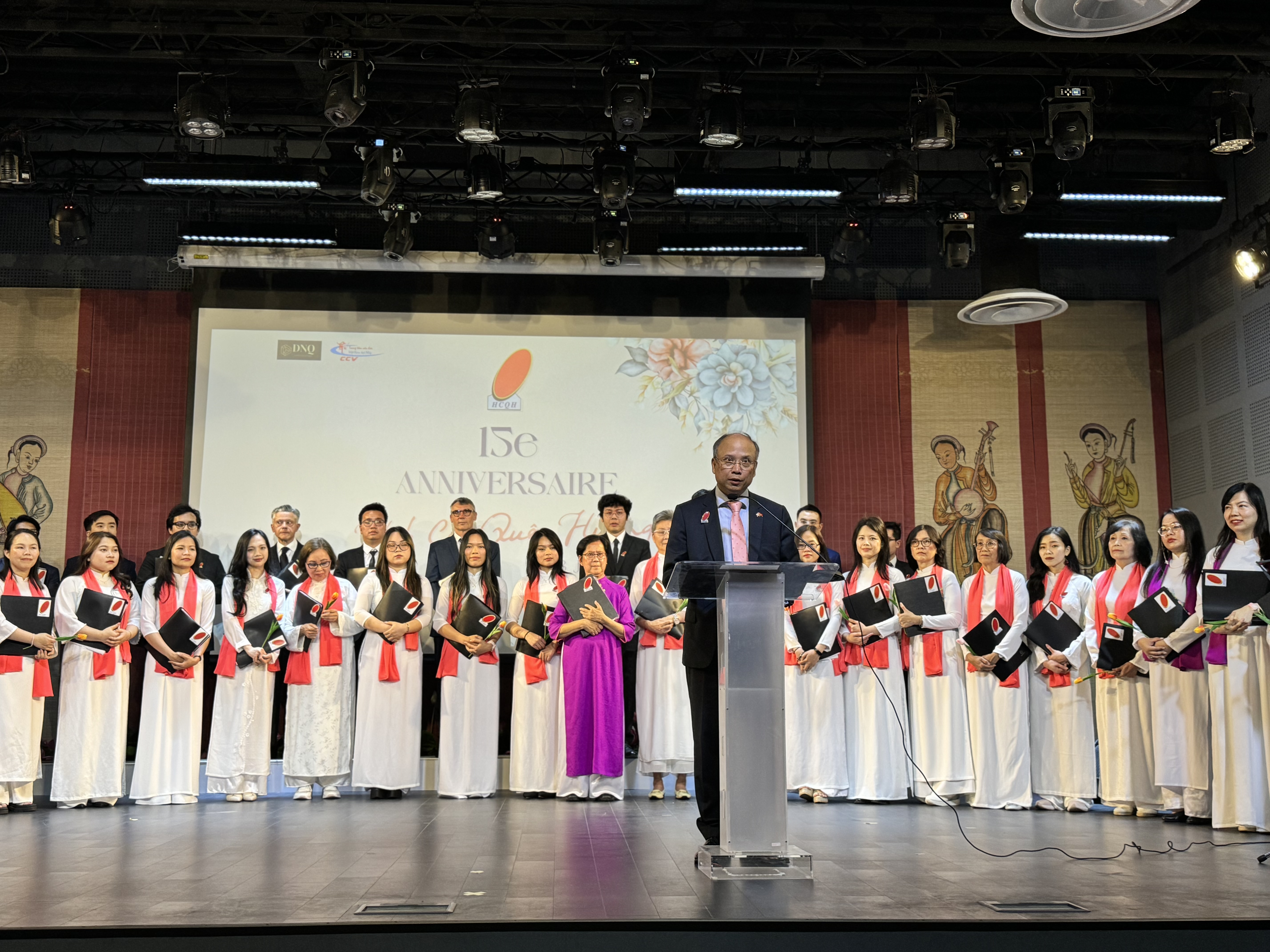 Nhân dịp này, Đại sứ quán Việt Nam tại Pháp đã trao giấy khen cho Hợp ca Quê hương vì những nỗ lực không ngừng nghỉ trong việc thúc đẩy quảng bá văn hóa, âm nhạc nước nhà tại Pháp trong suốt hành trình 15 năm qua.