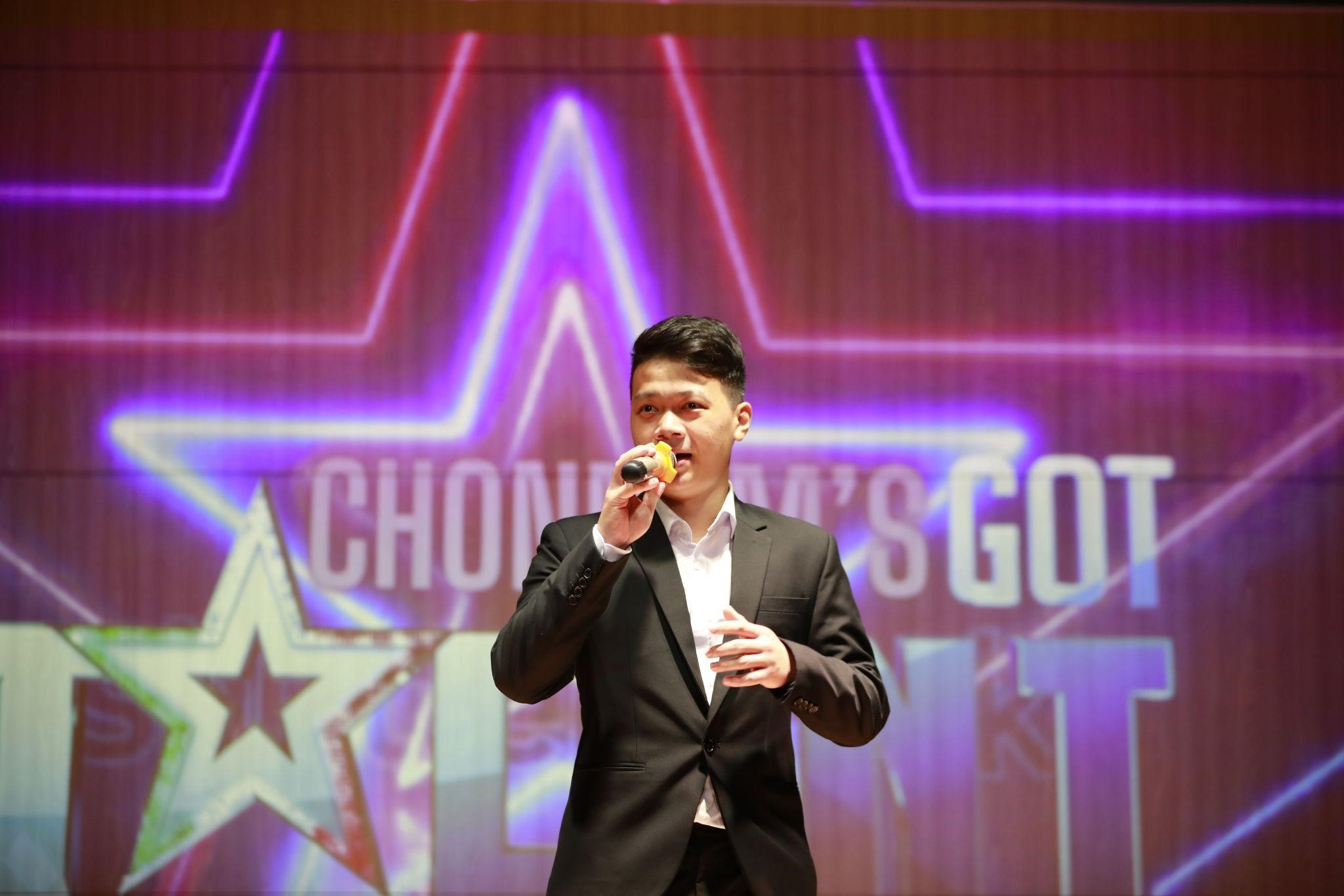 Thí sinh Nguyễn Trường Minh Quân, trường Đại học Dongshin, thể hiện tiết mục “Sapa nơi gặp gỡ đất trời”. |