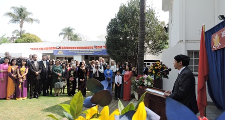 | Đại sứ Lê Huy Hoàng phát biểu tại buổi lễ |