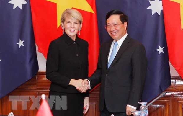 Ảnh tư liệu: Phó Thủ tướng, Bộ trưởng Bộ Ngoại giao Phạm Bình Minh và Bộ trưởng Ngoại giao Australia Julie Bishop. - Ảnh: Lâm Khánh/TTXVN |