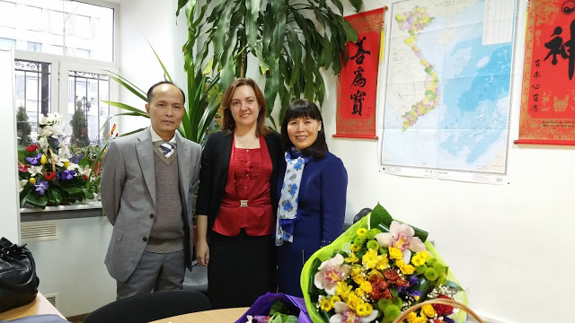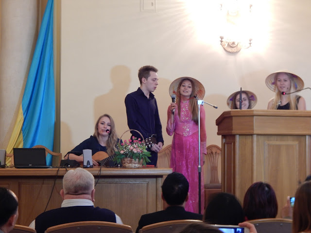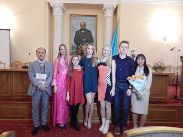 Một điều đặc biệt – tất cả những lời phát biểu của các thầy cô và các vị khách đều được Tiến sĩ Ngữ văn, nhà Việt Nam học Victoria Musiychuk dịch rất nhanh và lưu loát. Với 7 năm sinh sống và học tập tại Việt Nam – cô là nhà Việt Nam học đầu tiên của Ukraina – người bắc nhịp cầu hợp tác giáo dục và văn hóa hữu nghị giữa hai dân tộc – người yêu Việt Nam bằng tất cả tấm lòng và niềm say mê nghiên cứu, niềm khát khao cống hiến cho sự nghiệp giáo dục và phát triển bộ môn tiếng Việt, phát triển Trung tâm Việt Nam học.