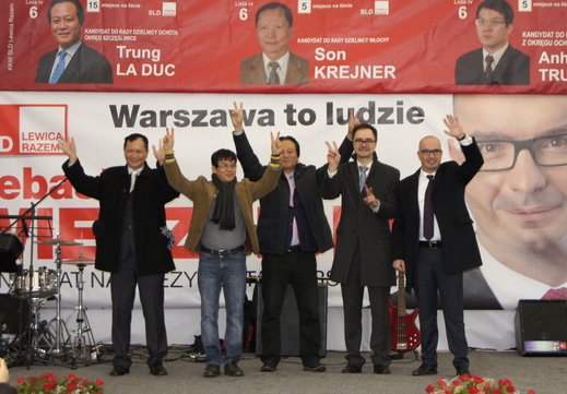 5 ứng cử viên gồm : Sebastian Wierzbicki, ứng cử viên chức chủ tịch thành phố Warszawa, Włodzimerz Piątkowka, Trương Anh Tuấn, ƯCV Hội đồng thành phố, Lã Đức Trung, ƯCV Hội đồng quận Ochota và Son Krejner (Nguyễn Tuấn Sơn ), ƯCV Hội đồng quận Włochy.