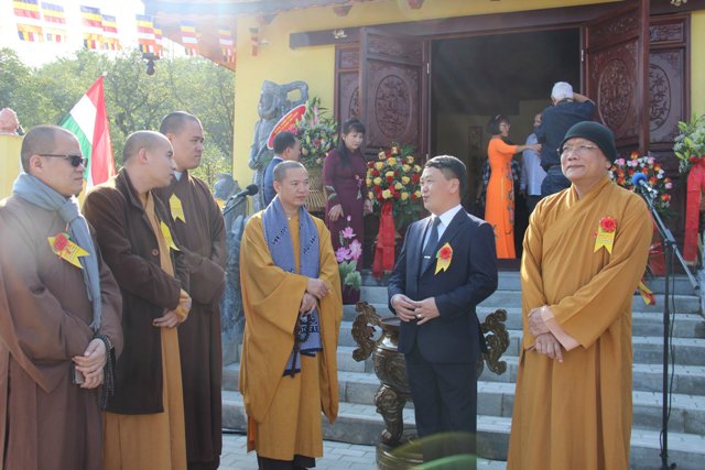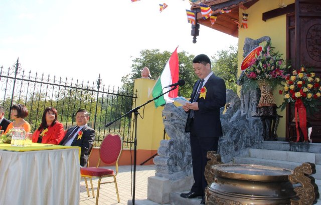 Phát biểu tại buổi lễ, Phó Chủ tịch – Tổng Thư ký Hầu A Lềnh bày tỏ cảm ơn Chính phủ Hungary nói chung và chính quyền thành phố Simontornya nói riêng đã tạo điều kiện về mọi mặt thủ tục, pháp lý giúp cộng đồng người Việt có một ngôi chùa để sinh hoạt văn hoá tâm linh.