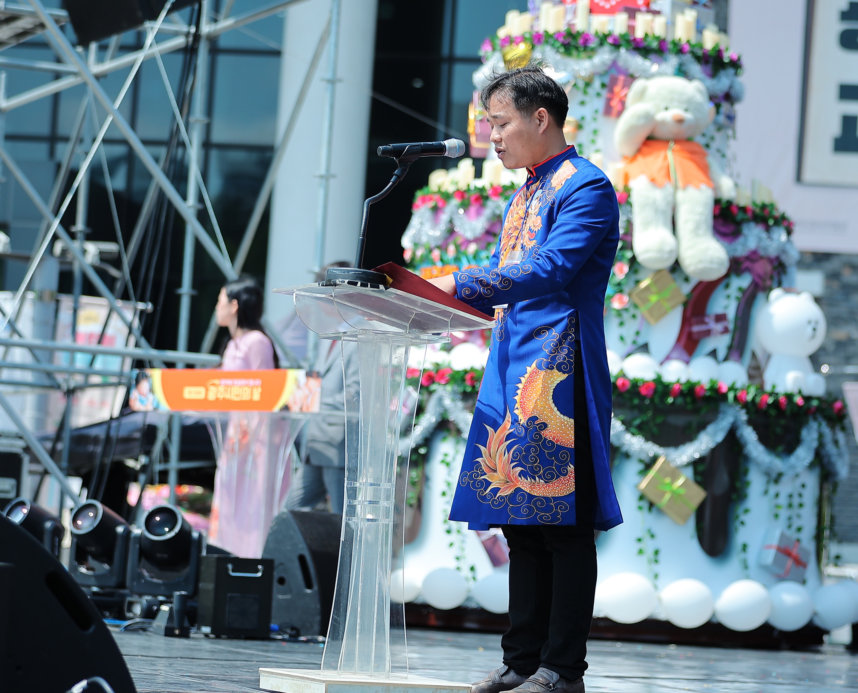 Ông Nguyễn Viết Phong, Chủ tịch Hội người Việt Nam tại Gwangju-Jeonnam, phát biểu. |