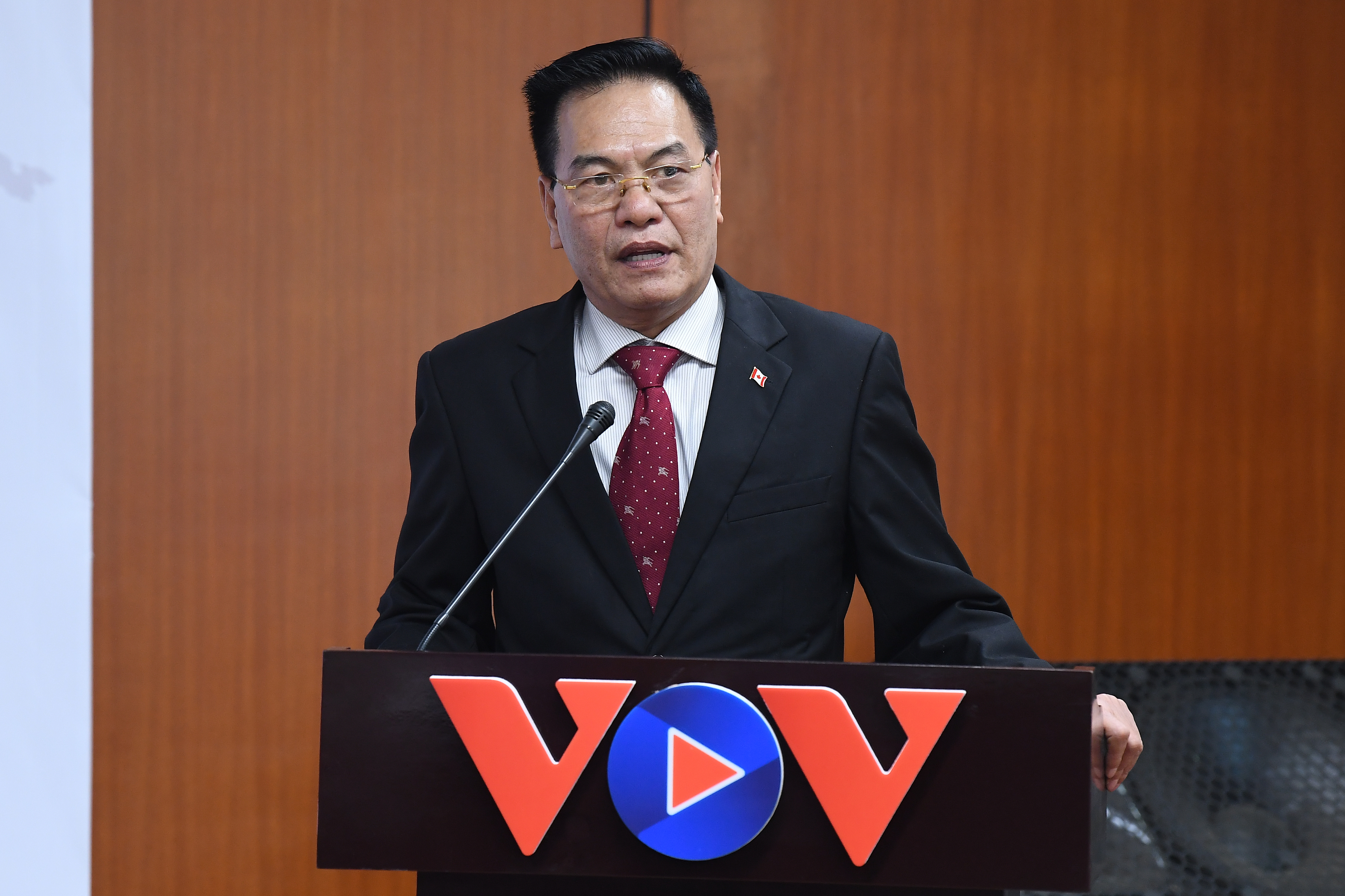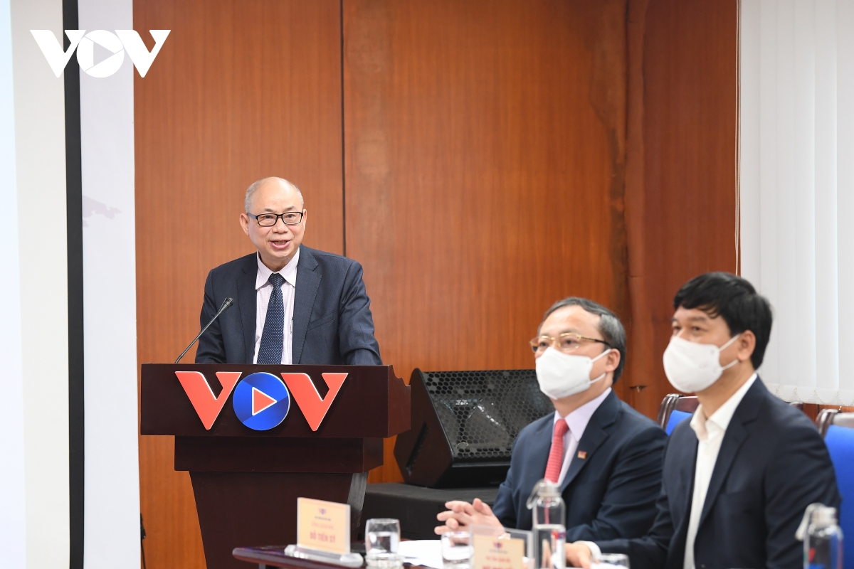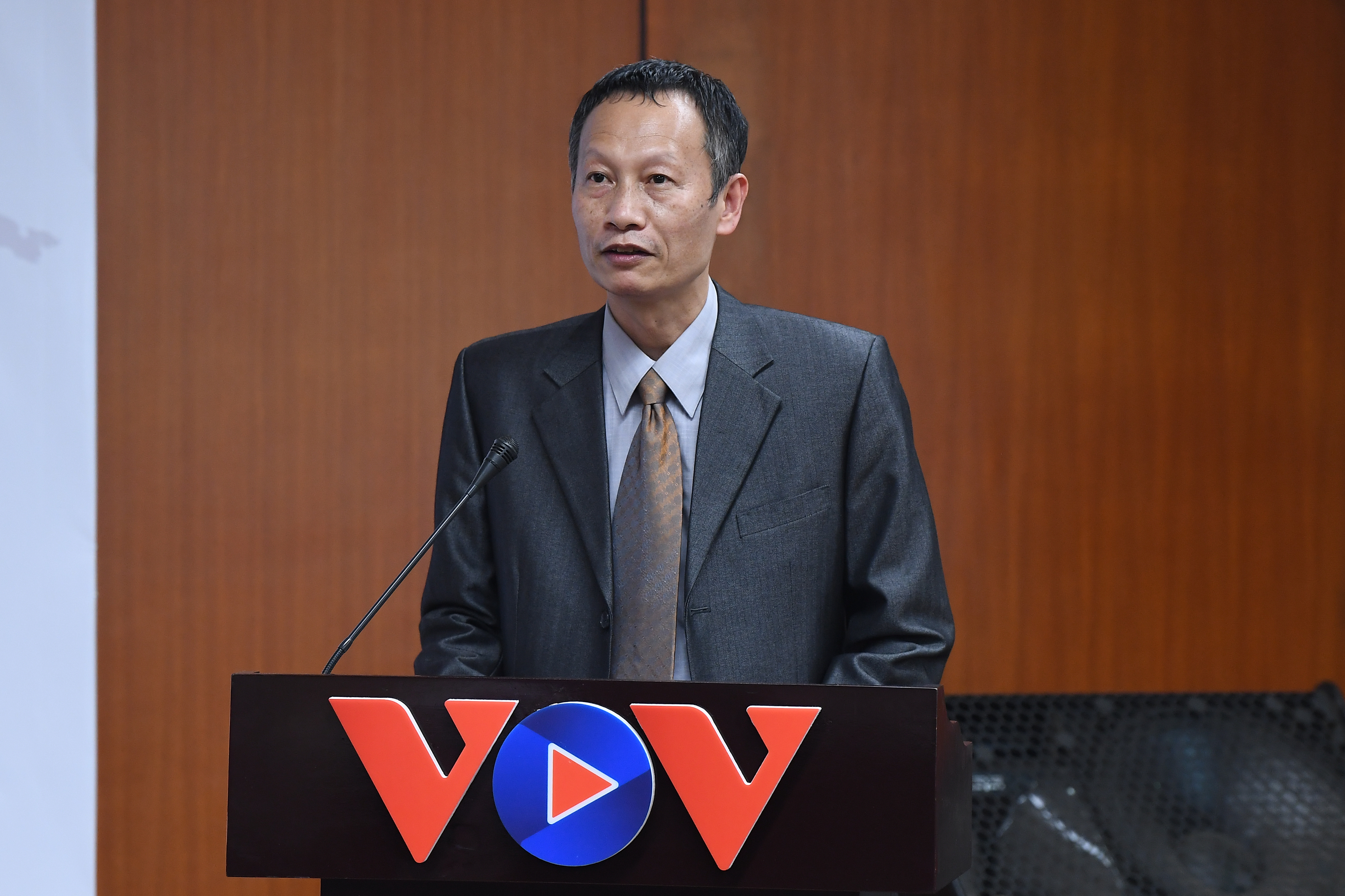 Ông Nguyễn Tiến Long, Trưởng Ban Đối ngoại (VOV5), đại diện Ban tổ chức phát biểu tổng kết cuộc thi "Kiều bào hát dân ca trên VOV". |