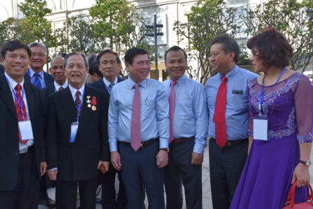 | Chủ tịch UBND TP Hồ Chí Minh Nguyễn Thành Phong, Thứ trưởng Vũ Hồng Nam trò chuyện cùng kiều bào. Quehuongonline.vn |