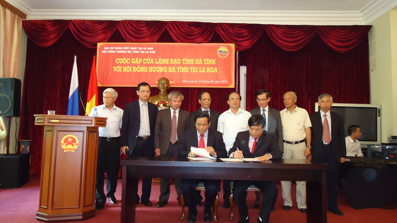 Đông đảo đại biểu tham dự cuộc gặp mặt đã chứng kiến lễ ký kết giữa Bí thư Tỉnh uỷ với cá nhân ông Hoàng Văn Vinh, Chủ tịch Hội người Việt tại tỉnh Xver-lốp khoản tài trợ dịch thuật, in ấn và phát hành cuốn "truyện Kiều" sang tiếng Nga và tài trợ xây dựng Cổng chào nơi tiếp giáp giữa tỉnh Nghệ An với Tỉnh Hà Tĩnh trên quốc lộ 1, thuộc địa phận huyện Nghi Xuân. Ông Hồ Sỹ Huy, Chủ tịch Hội Đồng hương Hà Tĩnh tại LB Nga, người có nhiều kinh nghiệm trong ngành may mặc ký với Bí thư Tỉnh ủy Hà Tĩnh về việc đầu tư xây dựng một xưởng may tại Hà Tĩnh.