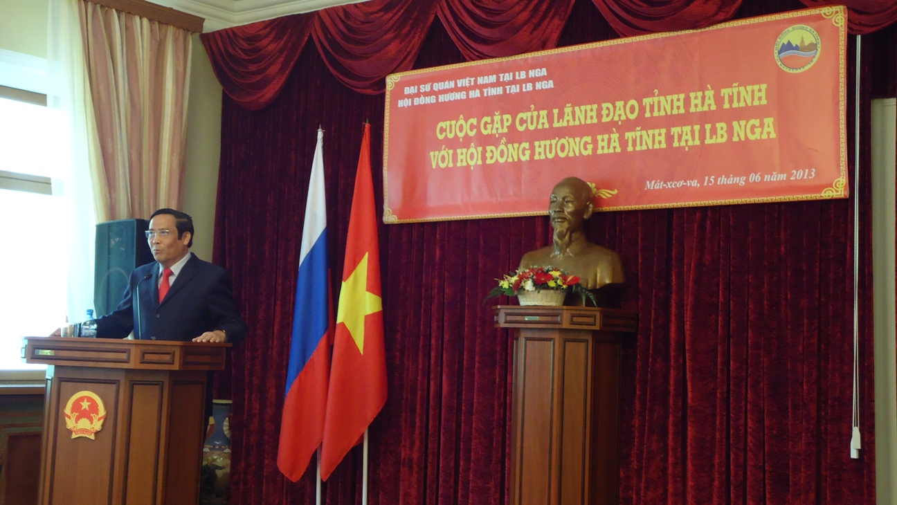 Buổi gặp gỡ diễn ra trong một không khí rất gần gũi, thân tình giữa những người đồng hương Hà Tĩnh với các vị lãnh đạo Tỉnh, ban ngành của Hà Tĩnh. Mở đầu buổi gặp gỡ, Đại sứ Đặc mệnh toàn quyền Việt Nam tại LB Nga Phạm Xuân Sơn phát biểu chào mừng đoàn và bày tỏ niềm vui, sự hiện diện của đoàn công tác sẽ mang đến cho những người con của quê hương Hà Tĩnh những thông tin bổ ích, làm gắn kết hơn tình yêu quê hương trong những người con xa xứ.