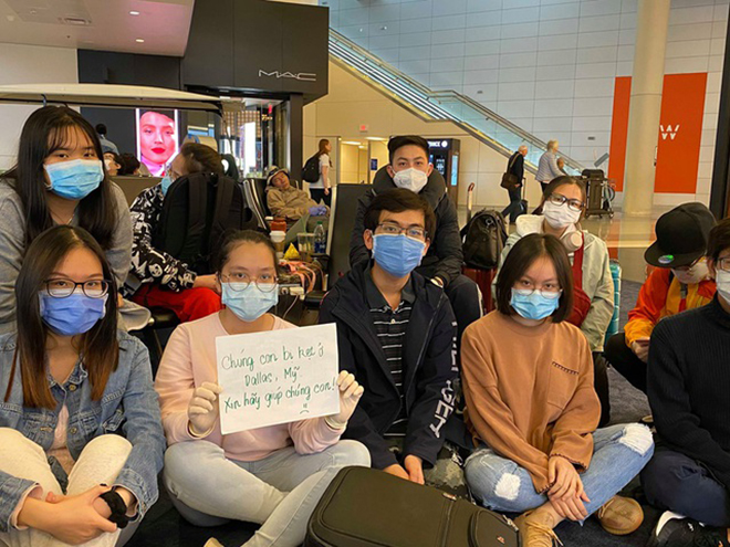 Nhóm du học sinh Việt bị kẹt tại sân bay Dallas, Texas, Mỹ khi không được lên máy bay về Việt Nam (nối chuyến tại Narita, Nhật Bản) - Ảnh: dantri.com.vn |