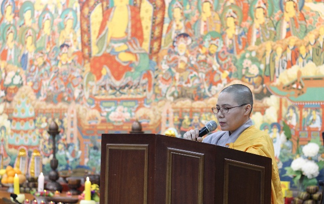 Sư cô Thích Nữ Giới Tánh, Chủ tịch Hội Phật tử Việt Nam tại Hàn Quốc, đọc diễn văn khai mạc.