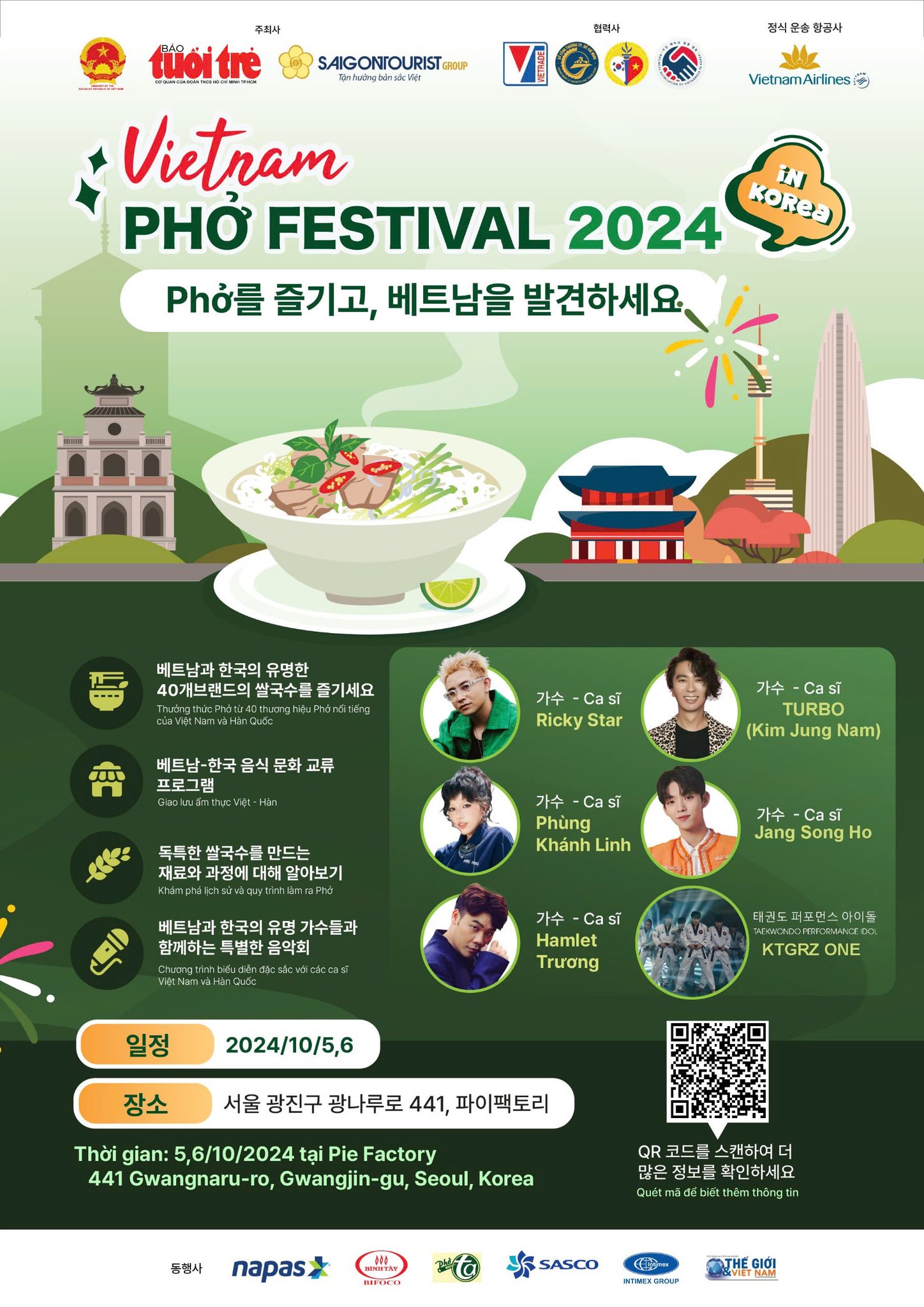 Lễ hội Phở Việt Nam năm 2024 sẽ diễn ra tại Seoul, Hàn Quốc vào ngày 5 - 6/10. Nét mới của sự kiện này là không gian thưởng thức phở được ban tổ chức bố trí rộng rãi, thoải mái.
