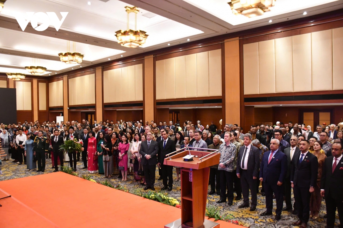 Phát biểu tại đây, Đại sứ Việt Nam tại Indonesia Tạ Văn Thông khẳng định trải qua 80 năm, Việt Nam đã đạt được nhiều thành tựu nổi bật trên nhiều lĩnh vực, đồng thời là một quốc gia chủ động, tích cực hội nhập, là bạn, là đối tác tin cậy và có trách nhiệm của cộng đồng quốc tế.