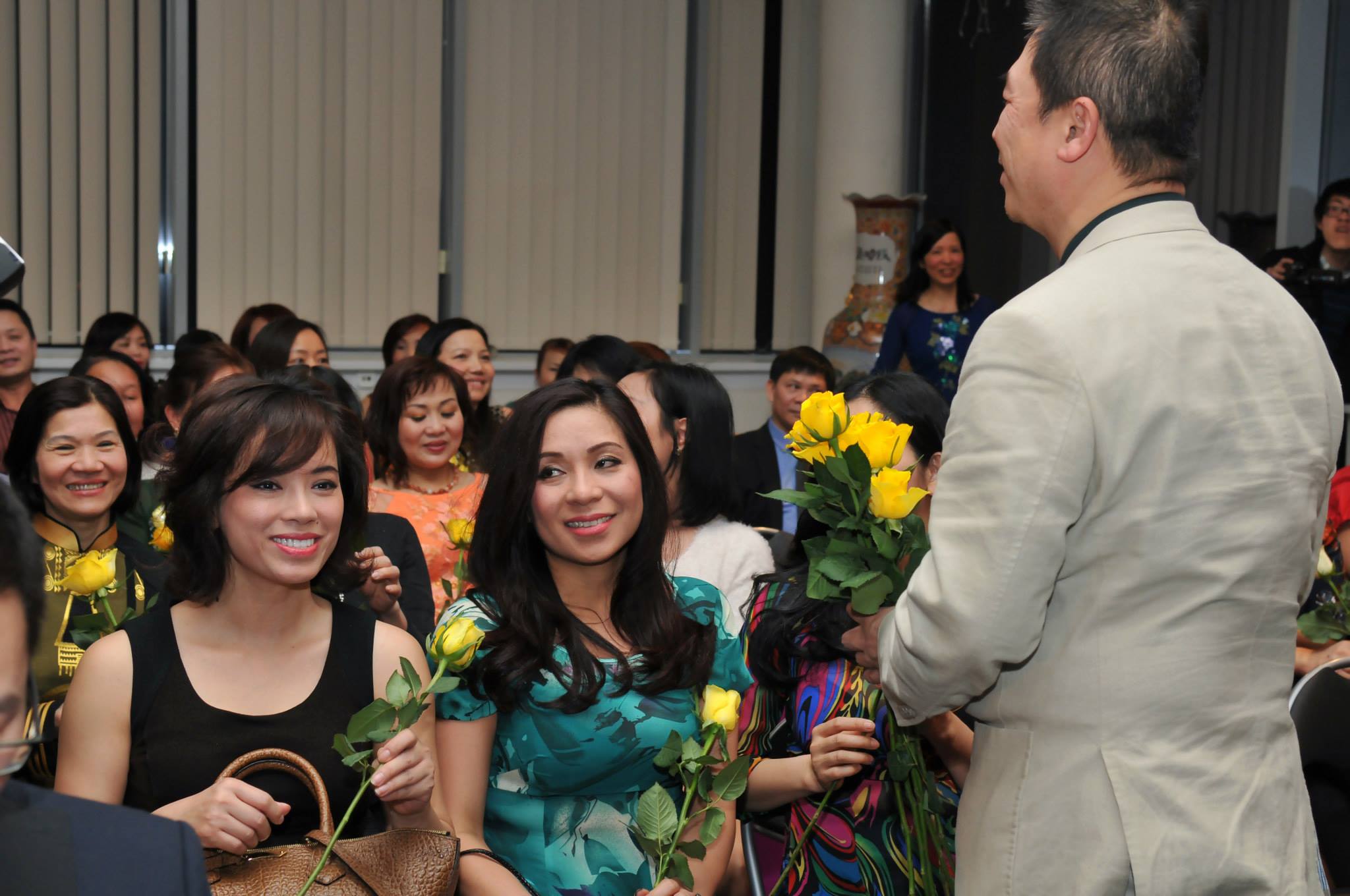| Đại diện nam giới tặng hoa chị em |