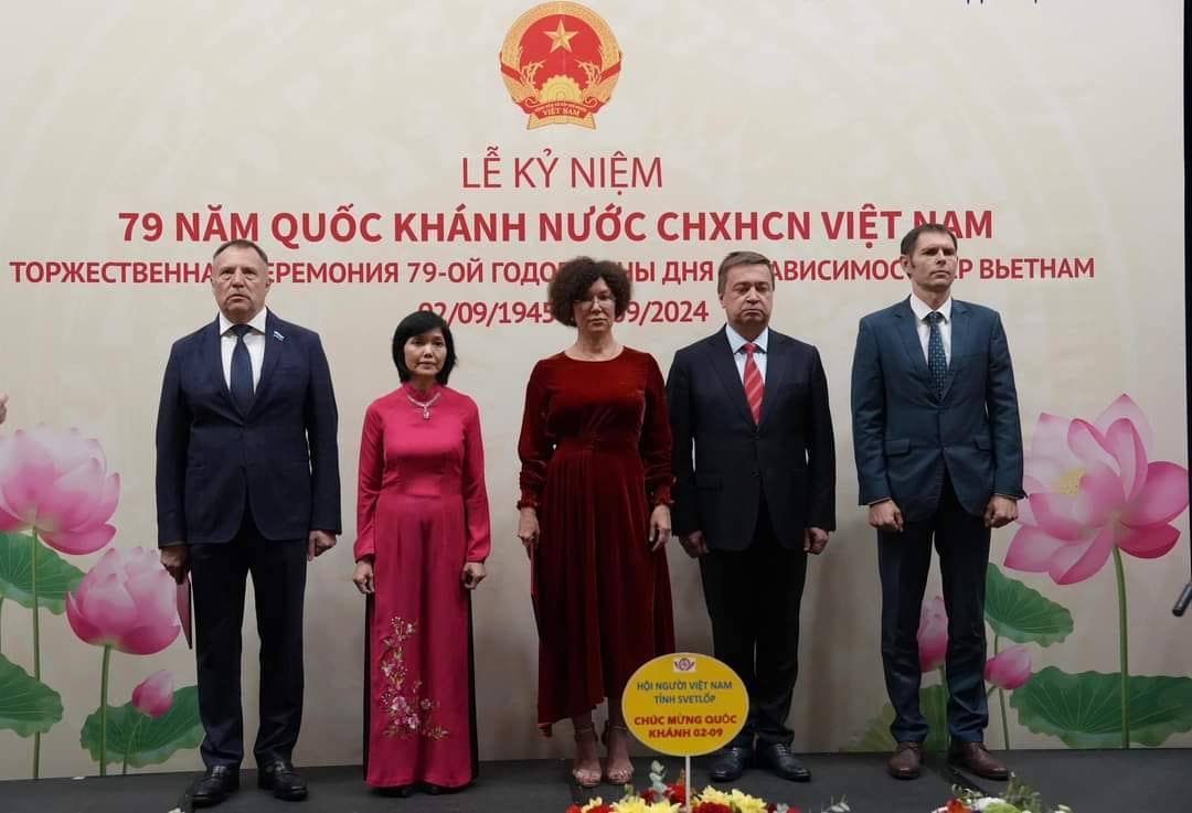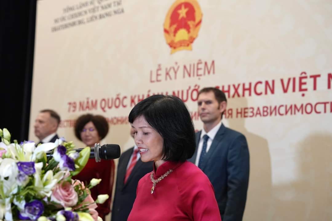 Tối 29/8, tại thành phố Ekaterinburg, Liên bang Nga, Tổng Lãnh sự quán Việt Nam tổ chức Lễ kỷ niệm lần thứ 79 Quốc khánh nước CHXHCN Việt Nam (2/9/1945 - 2/9/2024). Buổi lễ có sự tham dự của ông Alexander Kharlov, đại diện Bộ Ngoại giao Nga tại Ekaterinburg; bà Natalia Lugacheva, Giám đốc Bộ Phát triển Kinh tế tỉnh Chelyabinsk; ông Oleg Alexandrin, quyền Giám đốc Bộ Kinh tế và Quan hệ Kinh tế Đối ngoại tỉnh Sverdlovsk; cùng đại diện các cơ quan ngoại giao, Hội người Việt tại tỉnh Sverdlovsk, Hội cựu chiến binh Việt Nam và Hội cựu chiến binh Nga từng công tác tại Việt Nam, và đông đảo cộng đồng người Việt Nam tại Ekaterinburg và các tỉnh lân cận.
