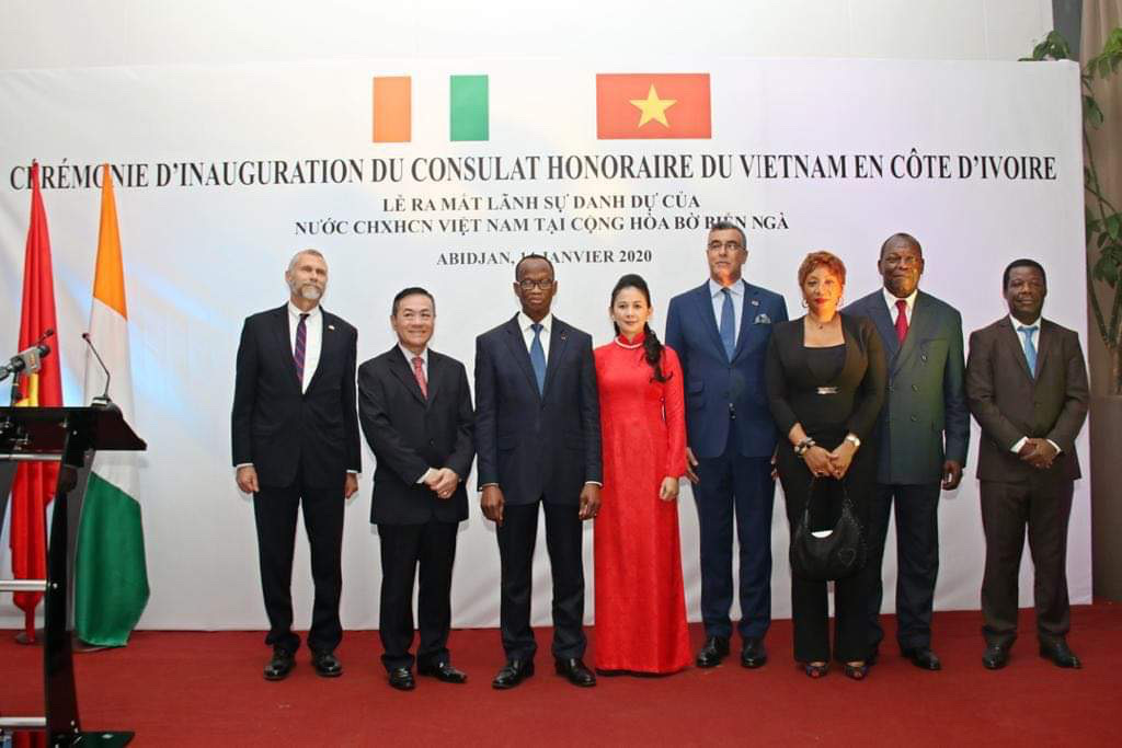 Ngày 14/1, tại thủ đô Abidjan của Bờ Biển Ngà, Đại sứ Việt Nam Trần Quốc Thủy và Lãnh sự danh dự Việt Nam Nguyễn Lệ Uyên Phương đã tổ chức lễ ra mắt chính thức Cơ quan Lãnh sự danh dự Việt Nam tại Bờ Biển Ngà và trao giấy chứng nhận Lãnh sự danh dự.