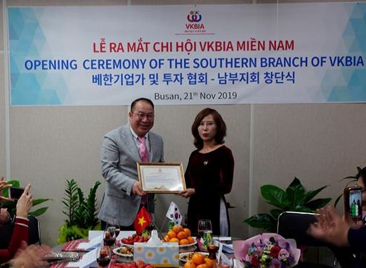 Ngày 21/11/2019, tại thành phố Busan, Hiệp hội Doanh nhân và Đầu tư Việt Nam – Hàn Quốc (VKBIA) tiến hành Lễ ra mắt và tổ chức hoạt động của Chi hội VKBIA – miền Nam Hàn Quốc. Sự ra đời của Chi hội nhằm mục đích tạo môi trường thuận lợi để tập hợp, thu hút và phát huy sức mạnh của mạng lưới doanh nhân, doanh nghiệp người Việt Nam và Hàn Quốc tại khu vực Busan - Gyeongsangnamdo và lân cận.