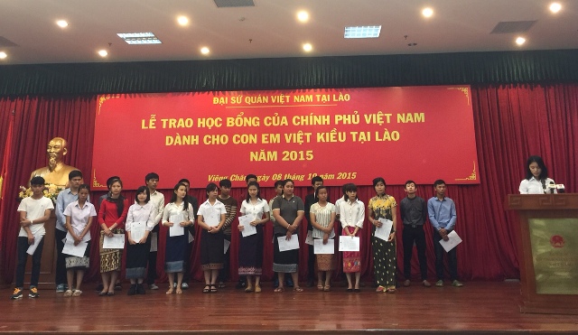 Tại Lễ trao quyết định, Đại sứ Việt Nam tại Lào Nguyễn Mạnh Hùng cho biết, đây là sự quan tâm đặc biệt của Đảng Chính phủ và nhân dân hai nước dành cho con em Việt kiều tại Lào. Đại sứ mong các cháu học sinh cố gắng rèn luyện tu dưỡng để không phụ lòng bố mẹ cũng như cộng đồng đã dành sự quan tâm cho các cháu: “Đại sứ quán Việt Nam tại Lào cam kết sẽ phối hợp với Đại sứ quán Lào tại Việt Nam theo dõi việc học tập của các cháu lưu học sinh là con em việt kiều và cam kết đối với các cháu học tốt nghiệp loại giỏi ở Việt Nam sẽ tạo điều kiện xin học bổng của Chính phủ Việt Nam cho các cháu học tiếp thạc sỹ và các cháu tốt nghiệp thạc sỹ loại giỏi sẽ tạo điều kiện xin học bổng học tiếp tiến sỹ. Chúng ta cần những con người giỏi giang để góp phần xây dựng đất nước Lào phát triển phồn vinh và vun đắp cho mối quan hệ truyền thống, tình hữu nghị đặc biệt và hợp tác toàn diện Việt Nam Lào - Lào Việt Nam.”
