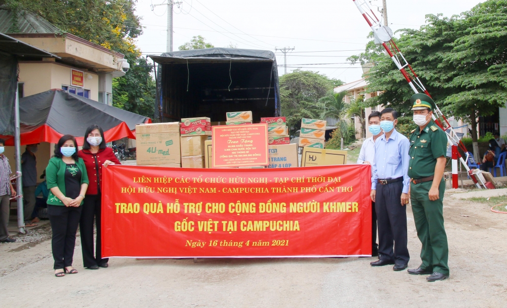 Ngày 16/4, Liên hiệp các tổ chức hữu nghị (Liên hiệp) TP Cần Thơ phối hợp cùng Tạp chí Thời Đại và Hội hữu nghị Việt Nam - Campuchia TP Cần Thơ đã tổ chức đoàn đến Cửa khẩu Quốc tế Thường Phước, tại huyện Hồng Ngự, tỉnh Đồng Tháp để trao quà hỗ trợ cho cộng đồng Khmer gốc Việt sinh sống tại Campuchia.